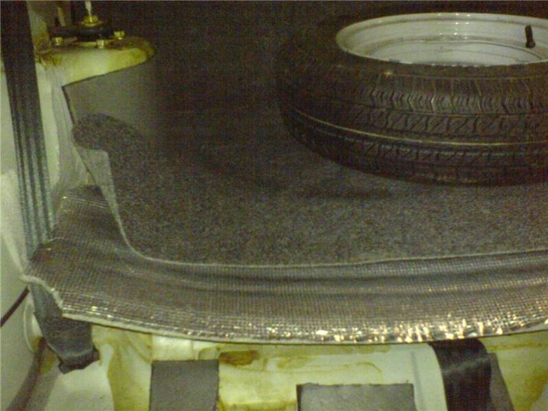 ... багажник я уже писал, вот между шумкой и ковролином ложим лист пено-
