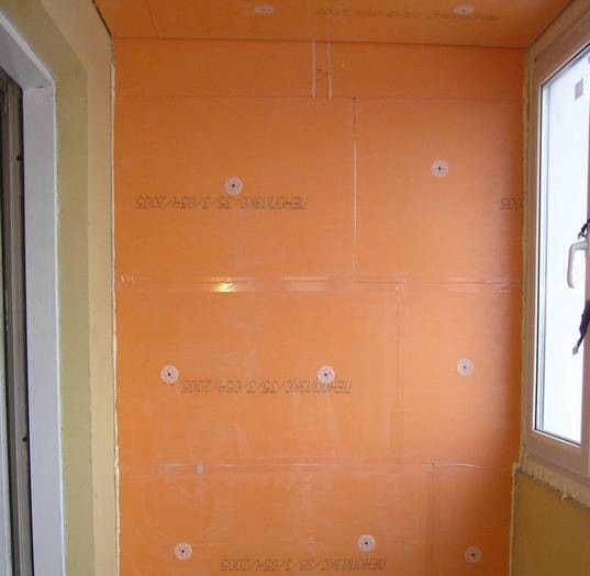 Пеноплекс нужно прикрепить саморезами сначала на стены, а потом уже на
