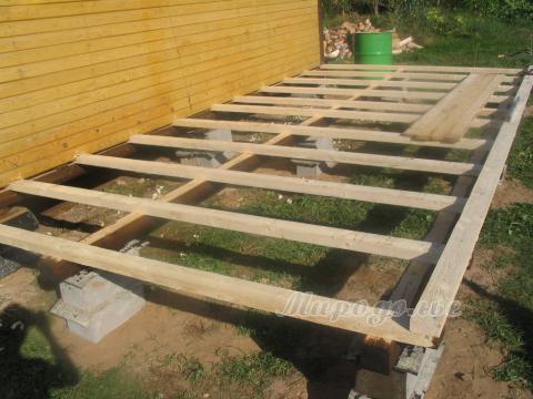 Лаги пола, обвязка пристройки. На предыдущую страницу.