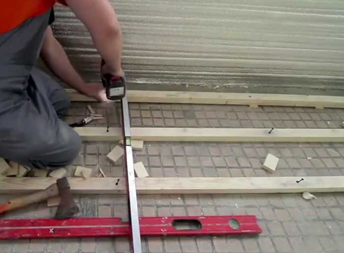 ...жесткости конструкции, лаги монтируются через каждые 30-40 см