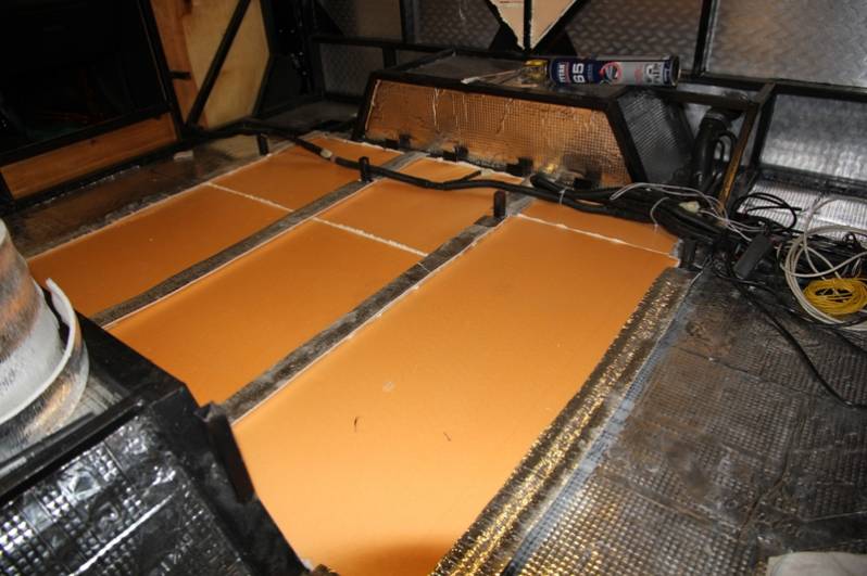 Утепление и обшивку начал с пола. Утеплитель - пеноплекс, толщина 20