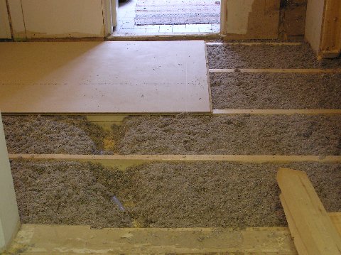 Полы снимаешь, если есть лаги между ними, закладываешь утеплитель